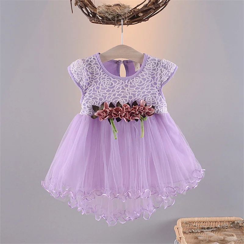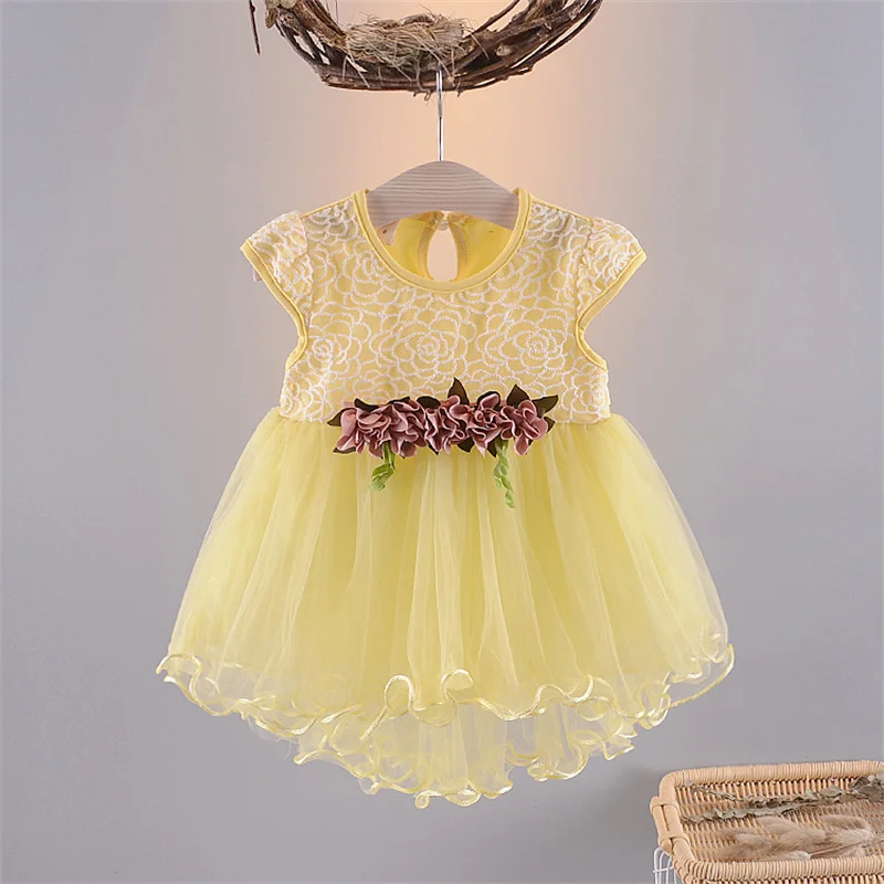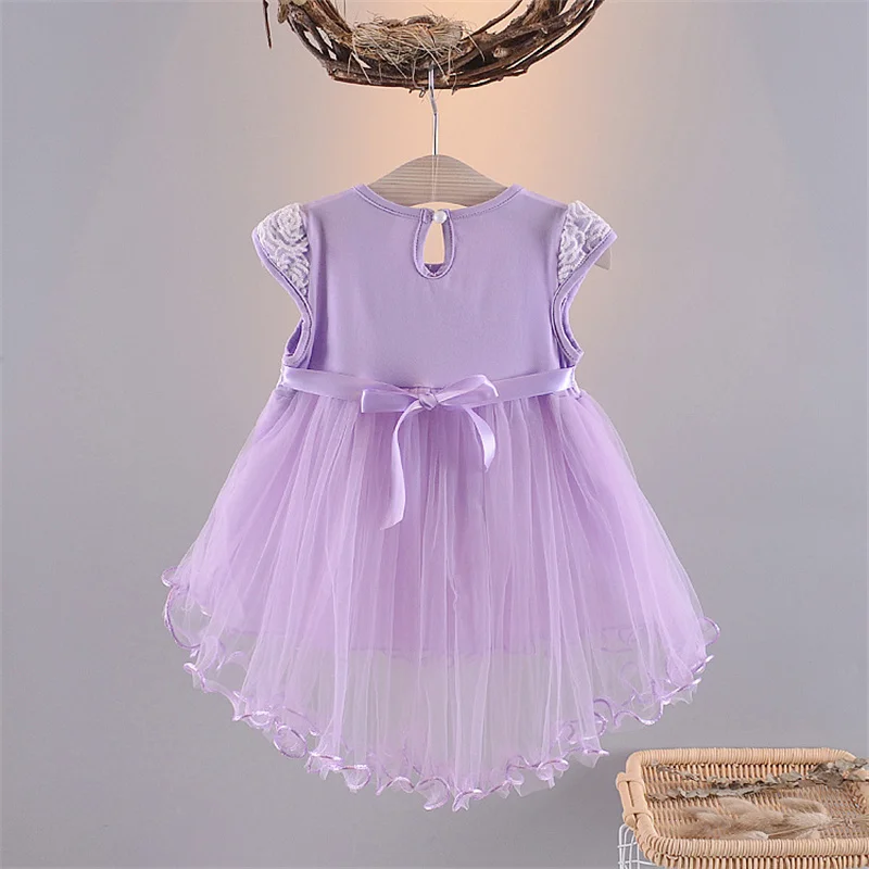 0-4Years Baby Girls Dress Kid Princess Party Clothes Toddler 4 Color Flower Mesh Children Clothing Sleeveless Summer Outfit A457