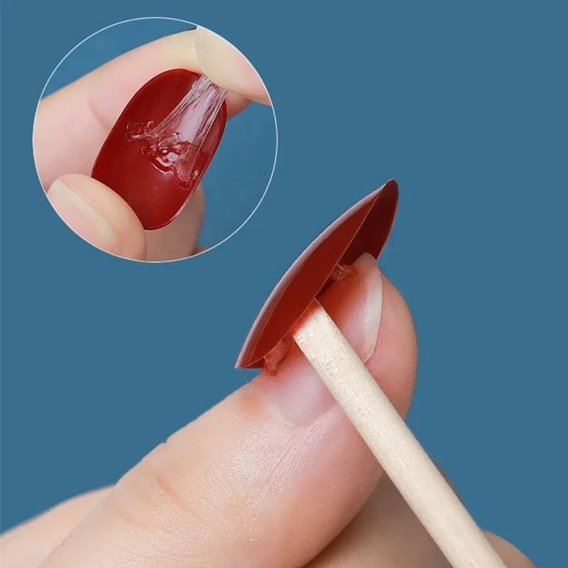 Press lightly on the sticker to ensure that there are no air bubbles or gaps between the sticker and the tip of the fake nail.
