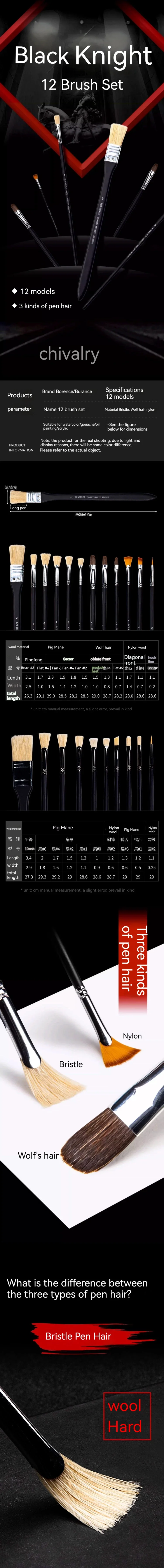 Material: pig bristle, wolf hair, nylon