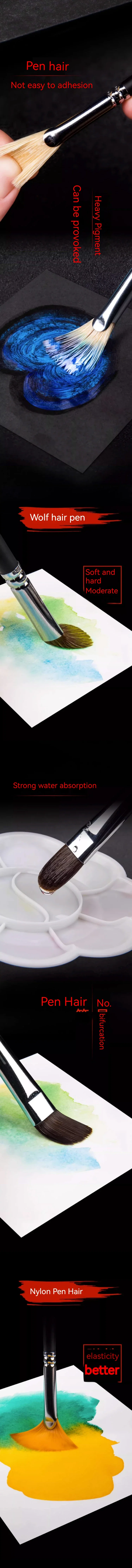 Professional Watercolor Brushes Art Student Wolf Hair Wooden Paintbrush Gift Box Set Pig Bristle Nylon Fan Mixed Flat Head Brush Artistic Multifunction Hook Line Painting Equipment