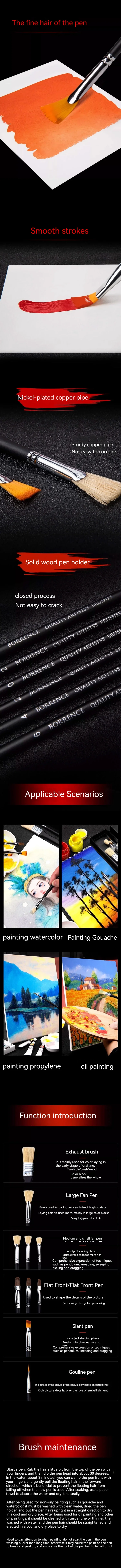 4.Painting Brushes Ideal for watercolor, oil, gouache, body, nail, face painting, miniature, model, ceramic, craft art painting, etc..