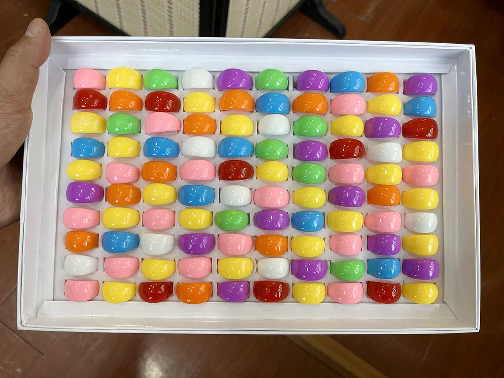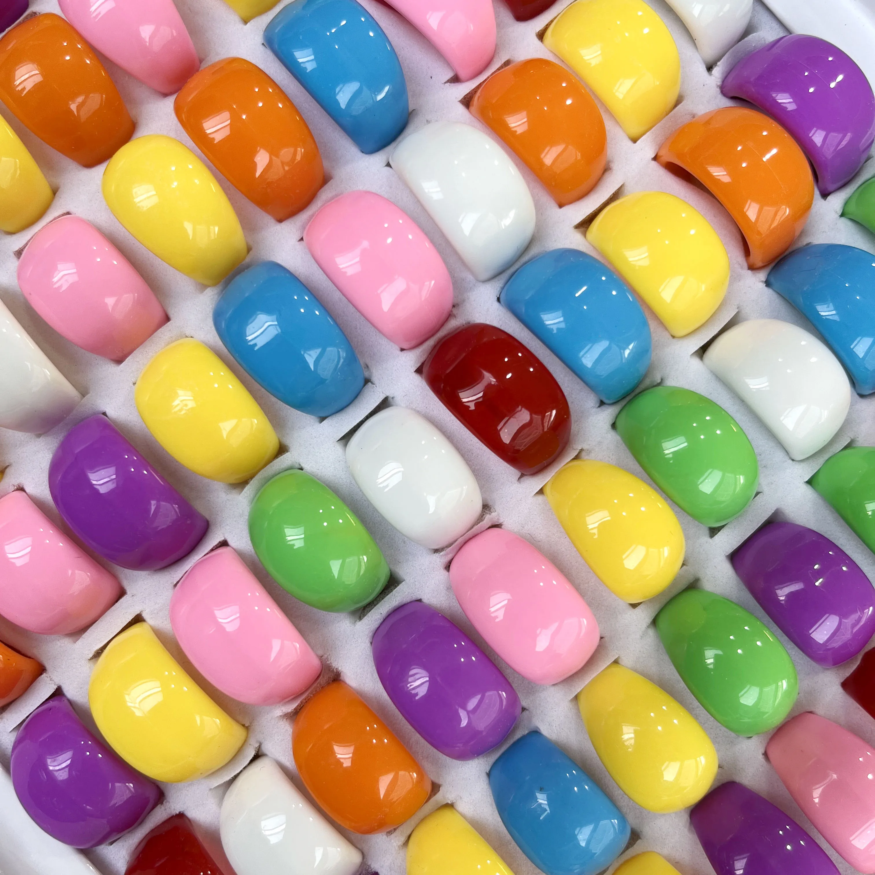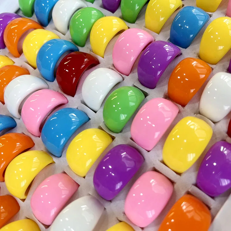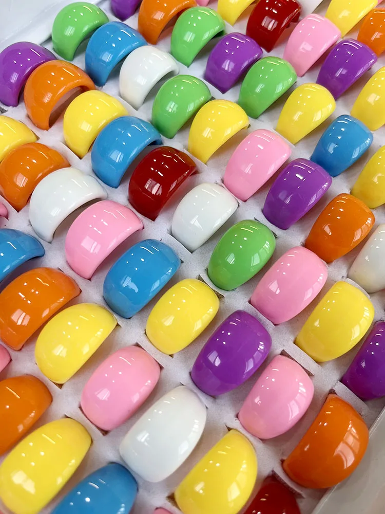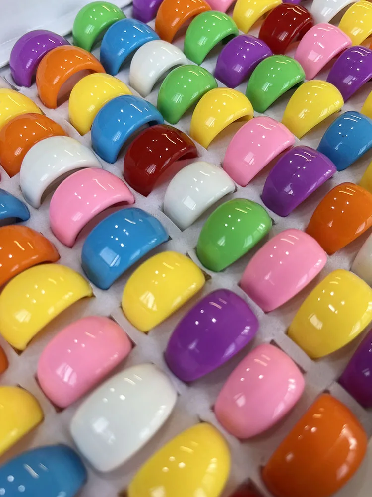20 / 50Pcs Lot Wholesale Solid Color Ring Macaron Candy Rings For Women Mix Lots Resin Chunky Fashion Round Finger Rings Jewelry