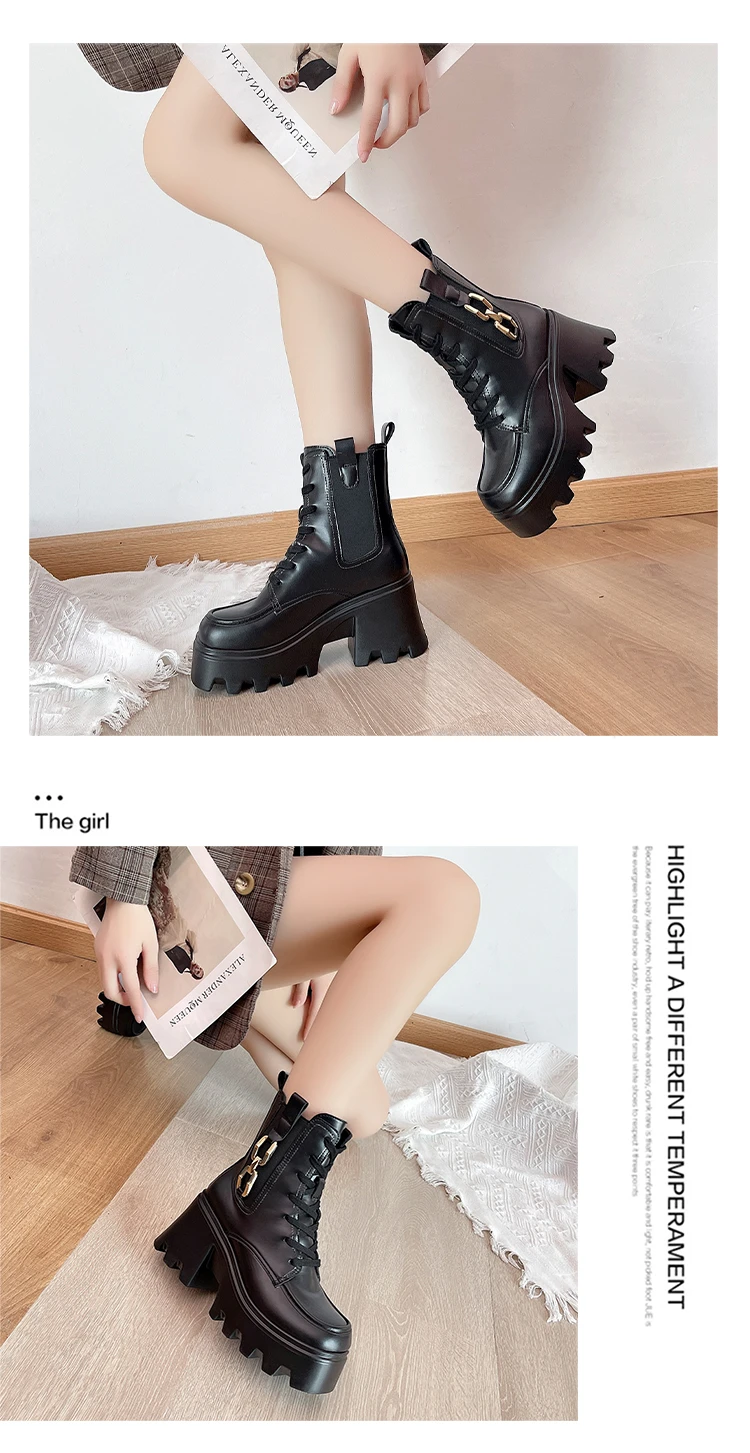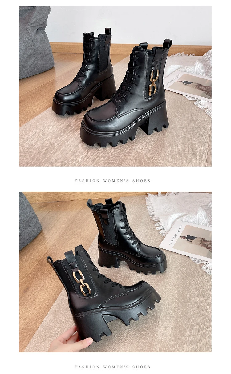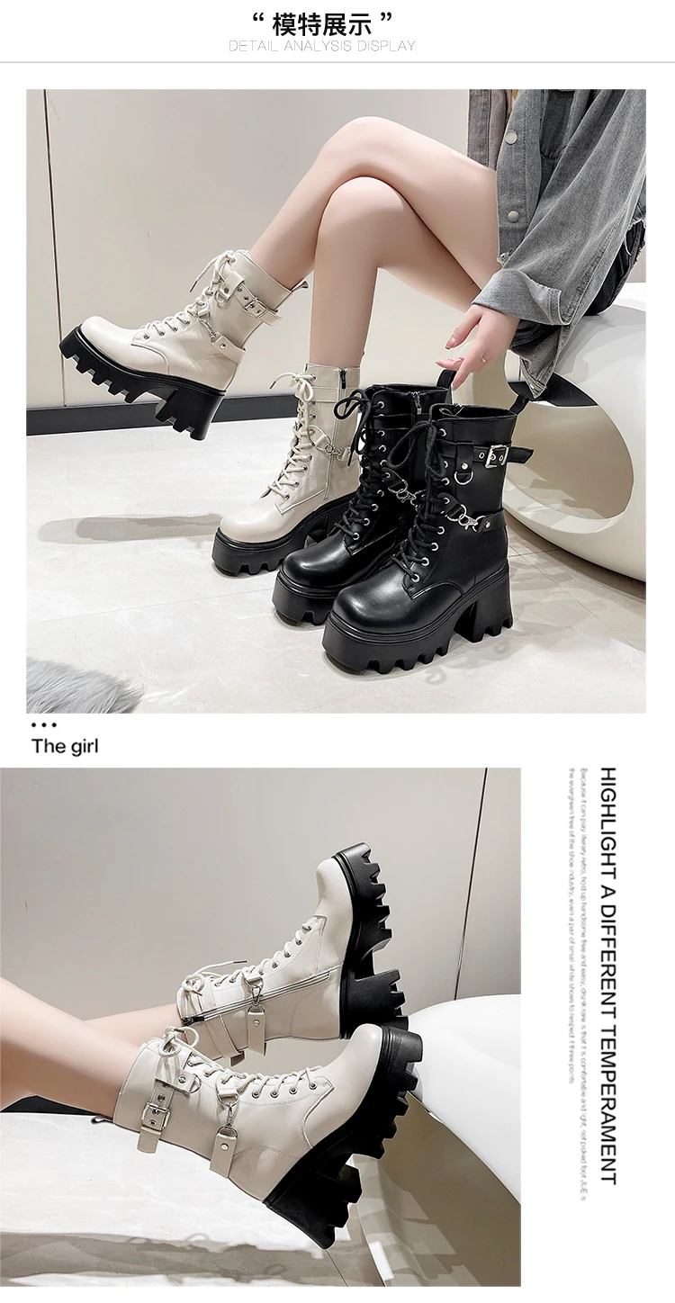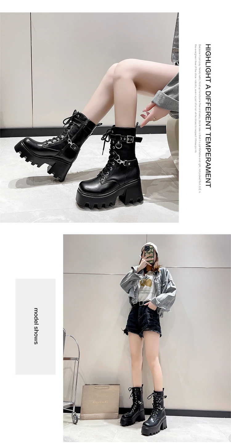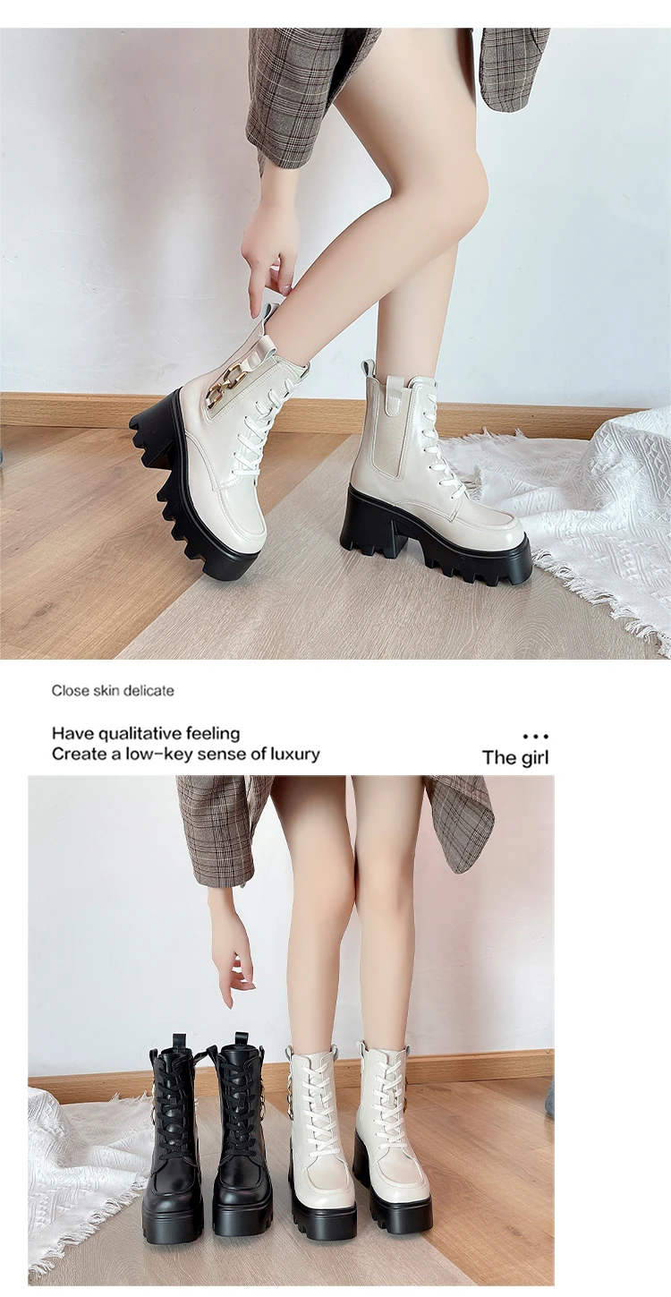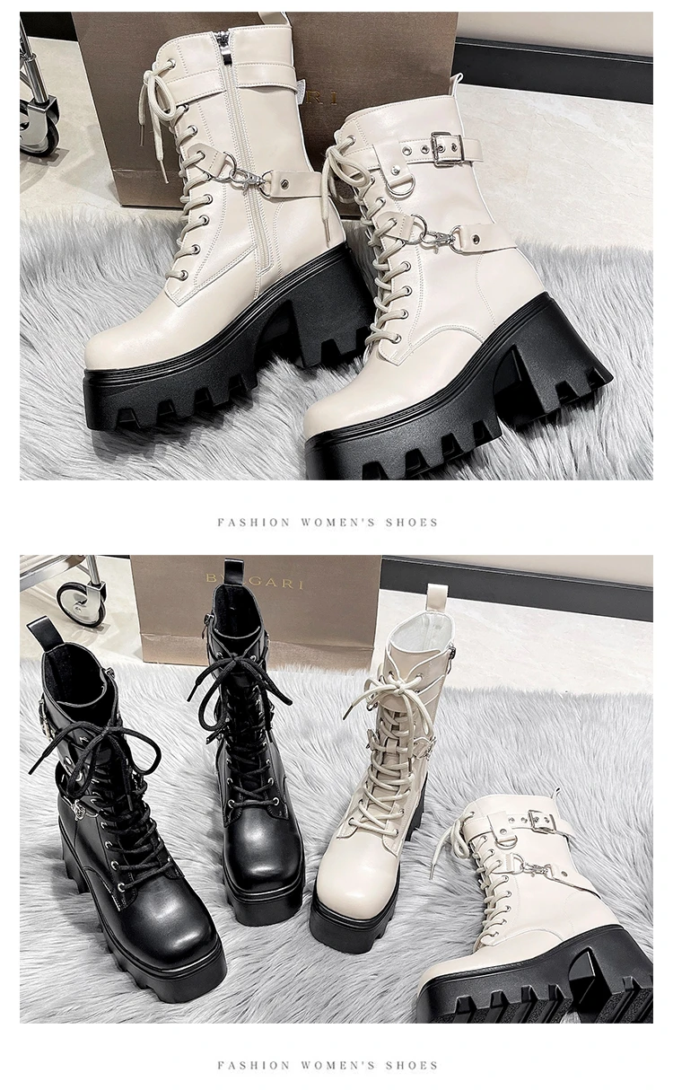 2023 Autumn And Winter New Women's Thick Heel Thick Sole Increase Thin Fashion All Matching Mid-leg Ankle Boots