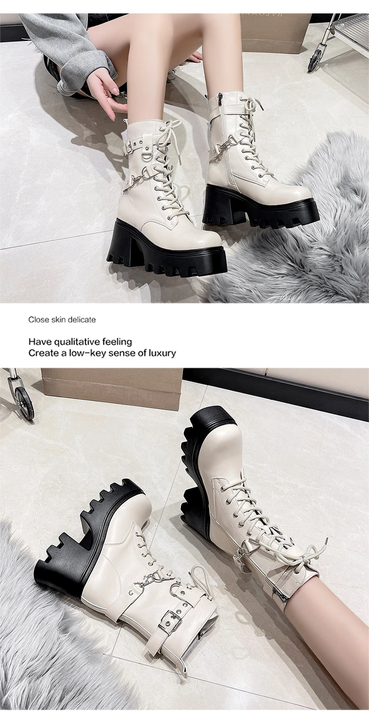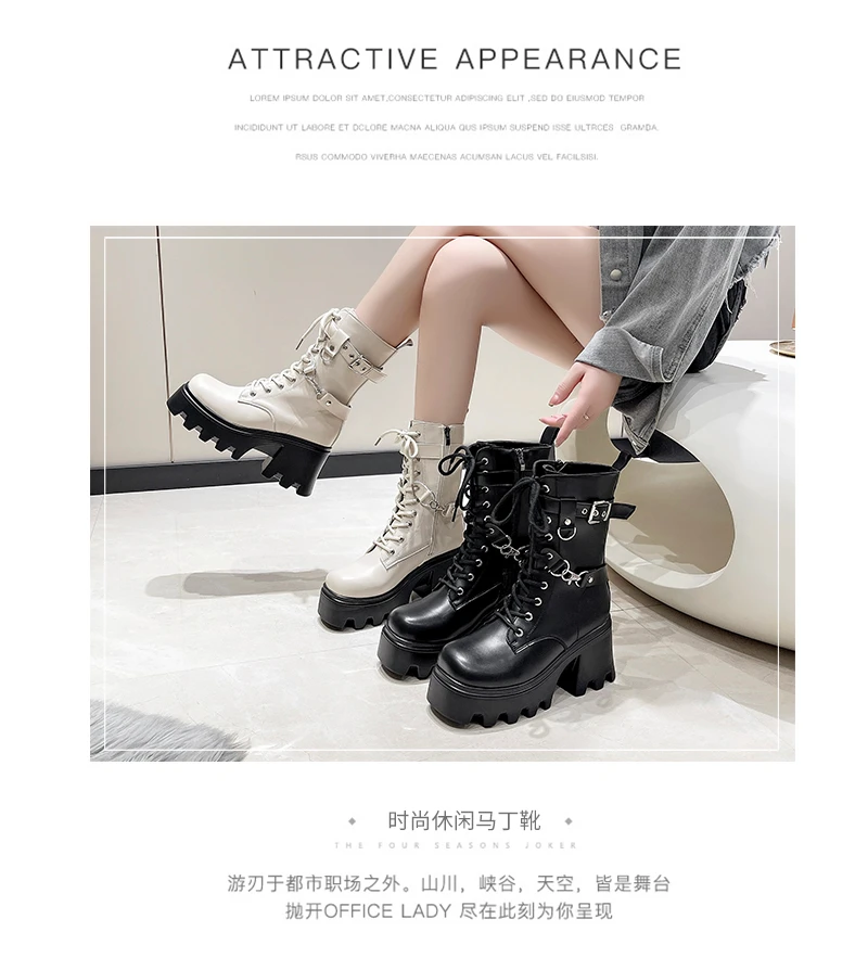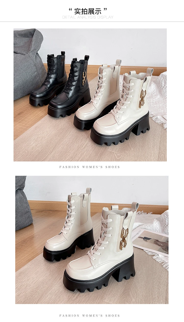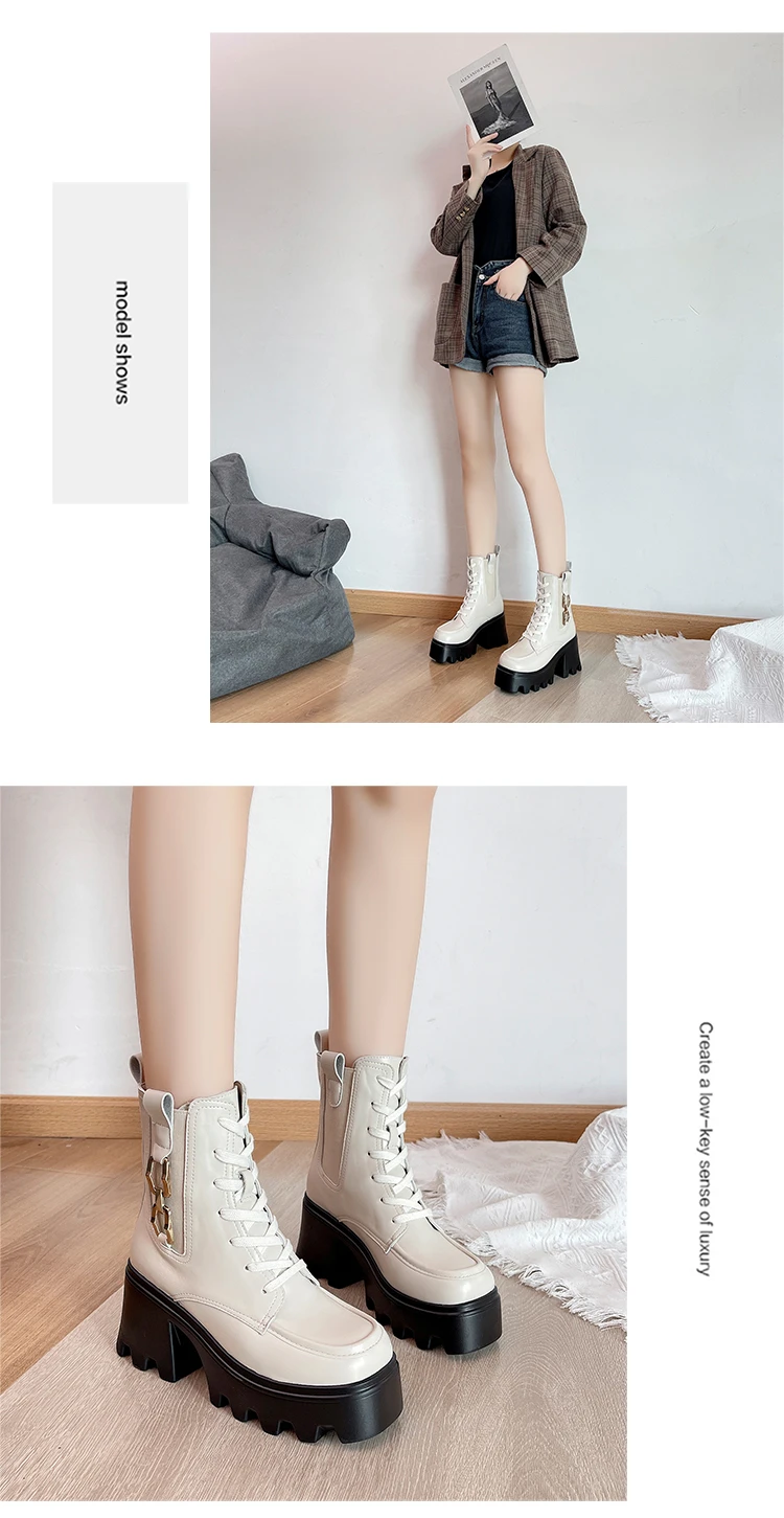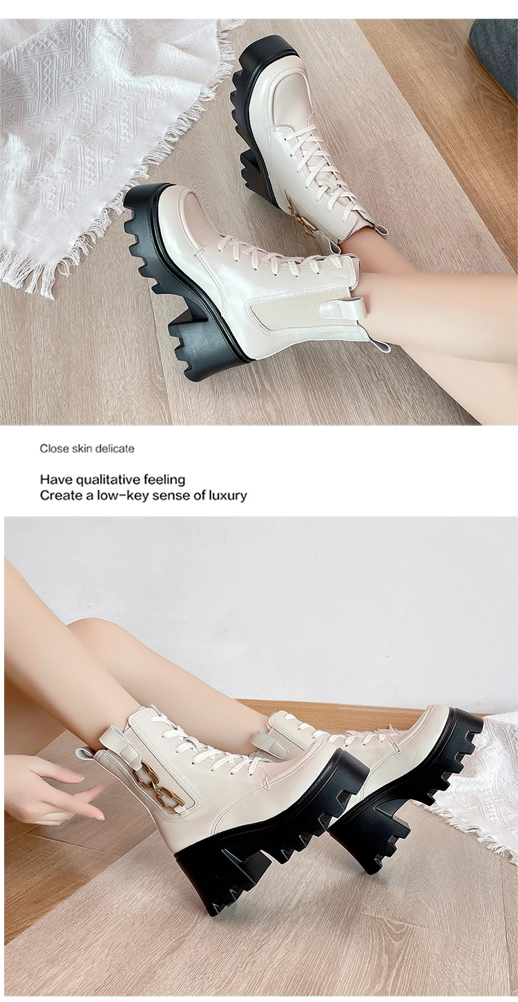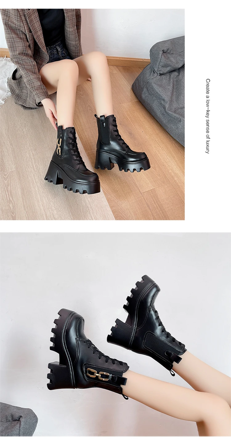 2023 Autumn And Winter New Women's Thick Heel Thick Sole Increase Thin Fashion All Matching Mid-leg Ankle Boots