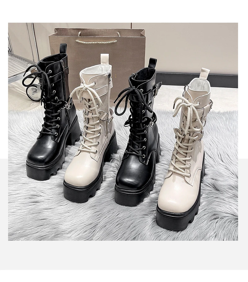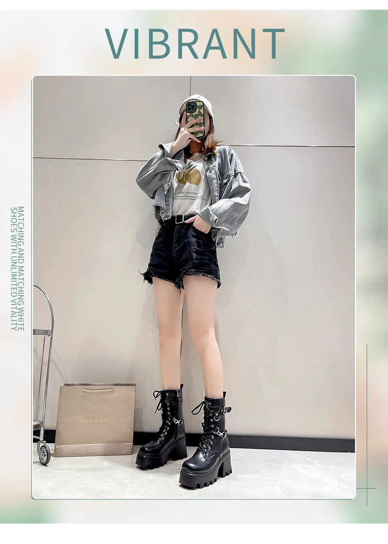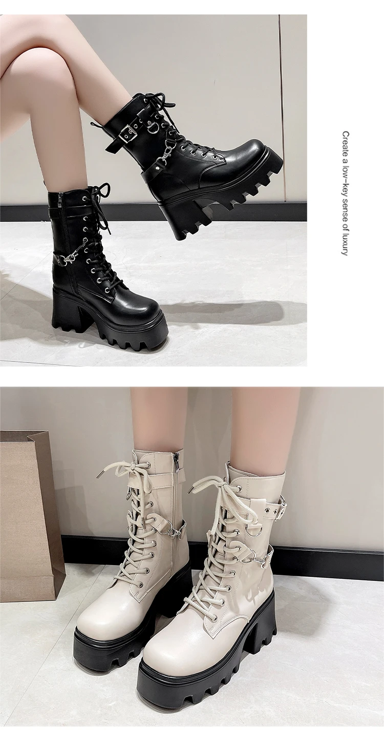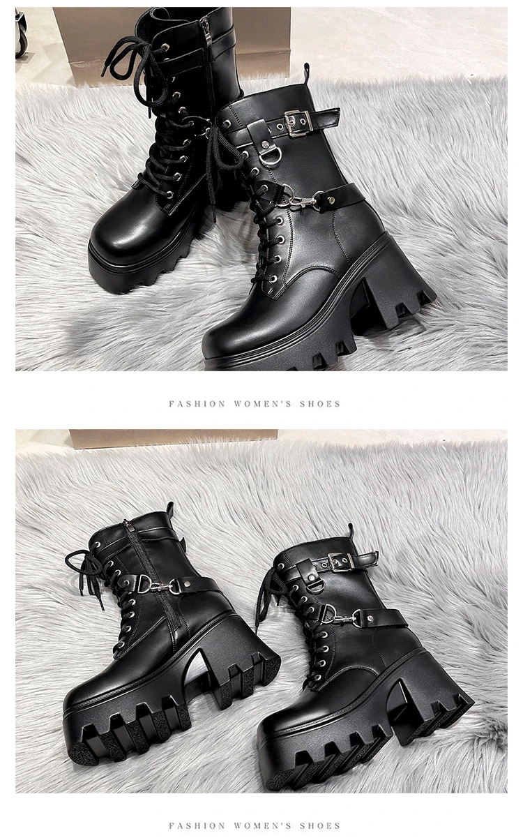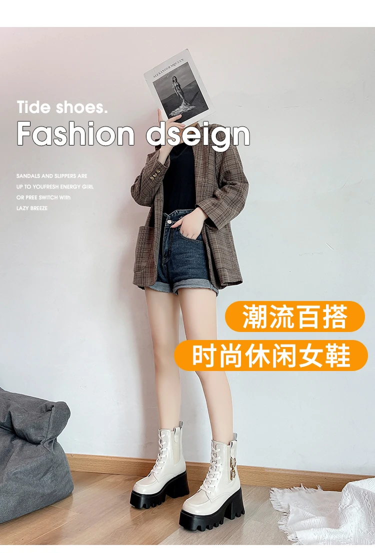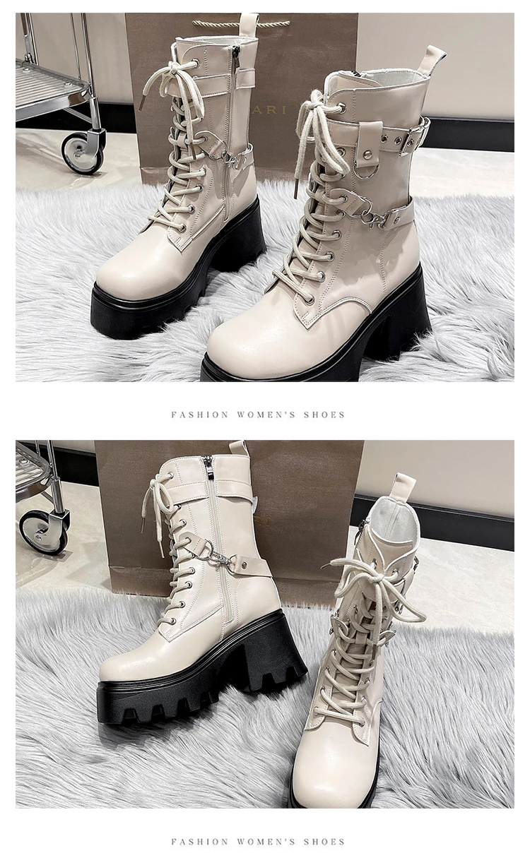 2023 Autumn And Winter New Women's Thick Heel Thick Sole Increase Thin Fashion All Matching Mid-leg Ankle Boots