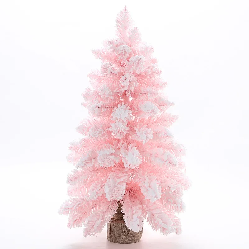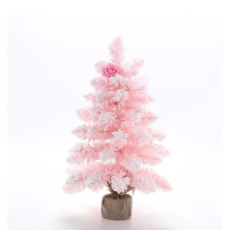 30/45/60cm New Mini Christmas Tree Pink Blue Pointed Snow Spray Snowflake Desktop Window Decoration Christmas Tree for Kids Gift
