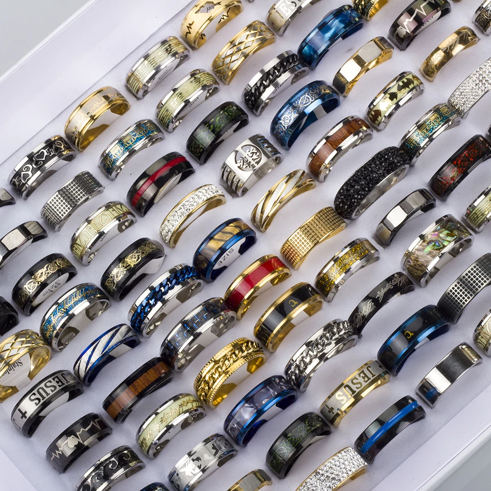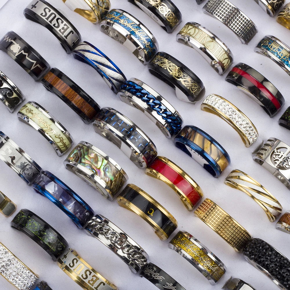 30 Pieces/Lot Mix Top High Quality Stainless Steel Ring for Men 2022 Fashion Jewelry Size 17-23mm Party Gift