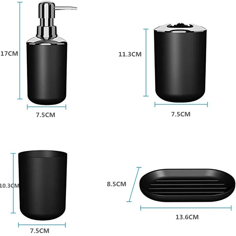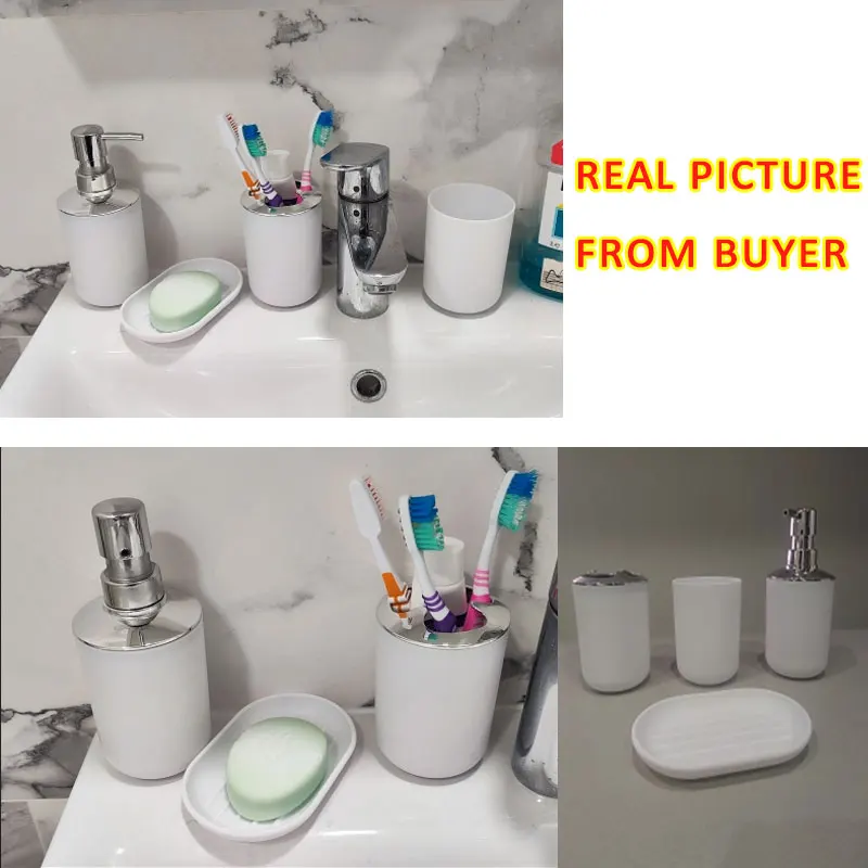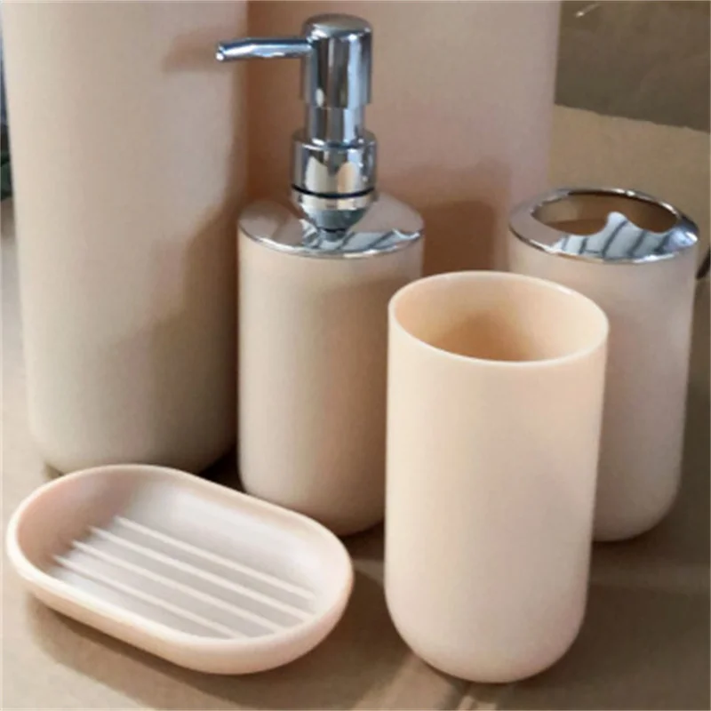 4pcs Luxury Bathroom Accessories Plastic Toothbrush Holder Cup Soap Dispenser Dish Toilet Holder Pump Bottle Cup Bathroom Set