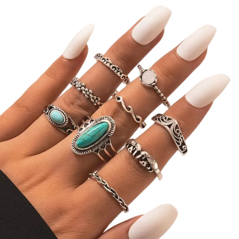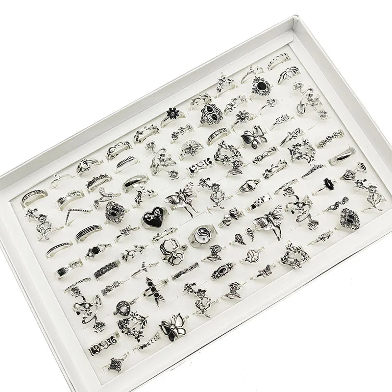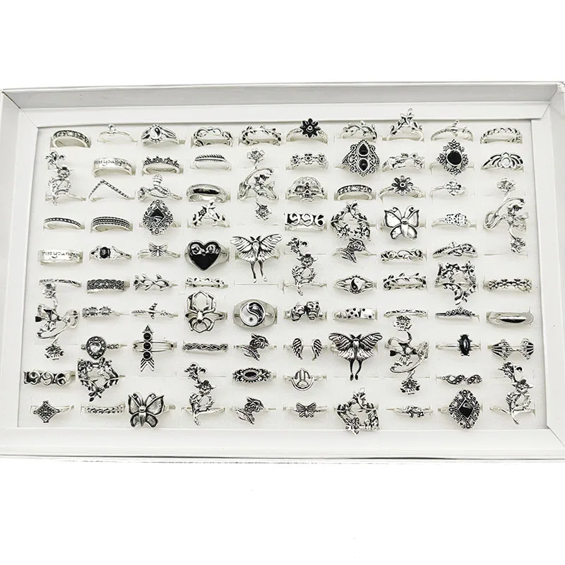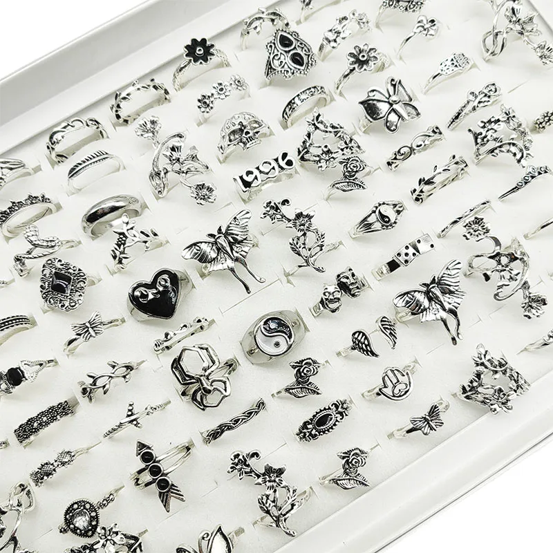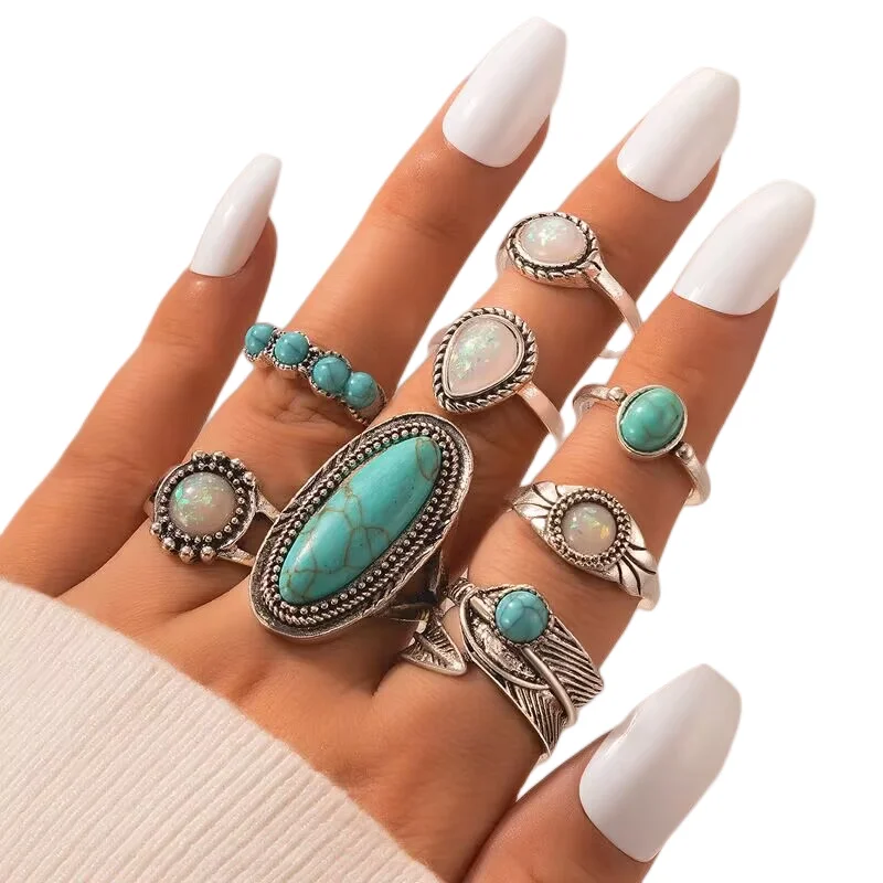 50pcs/Lot Wholesale New Big Opal Stone Finger Rings For Women Bohemia White Enamel Acrylic Water Drop Carved Hollow Jewelry Girl