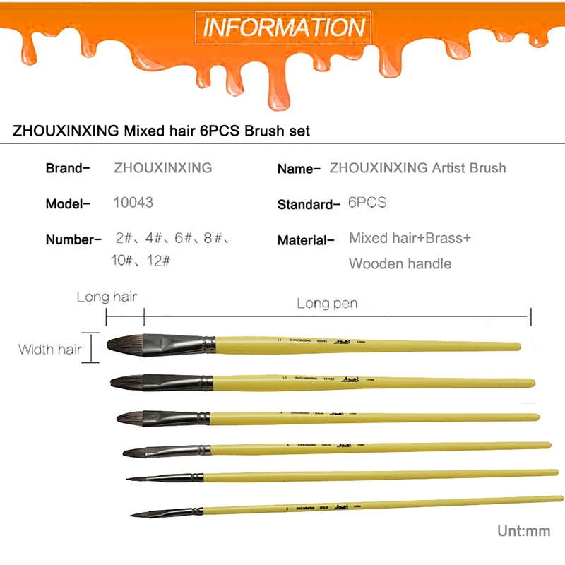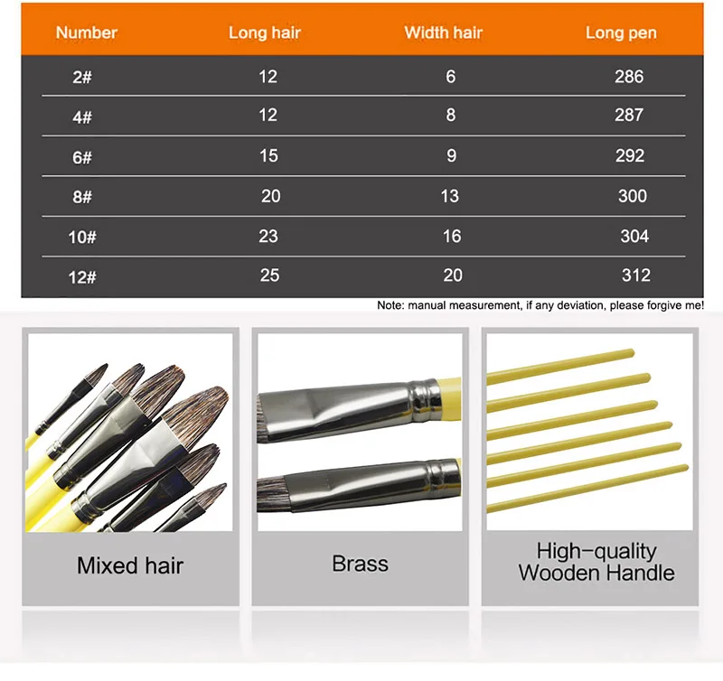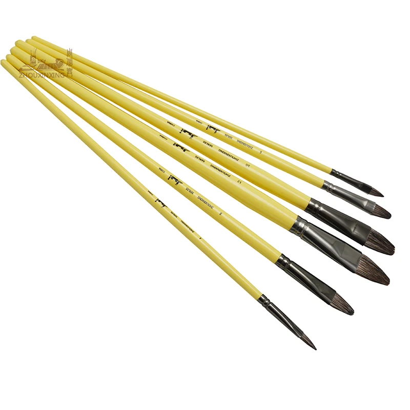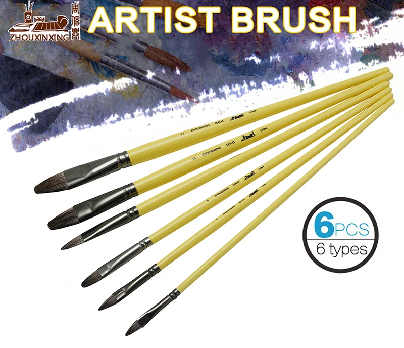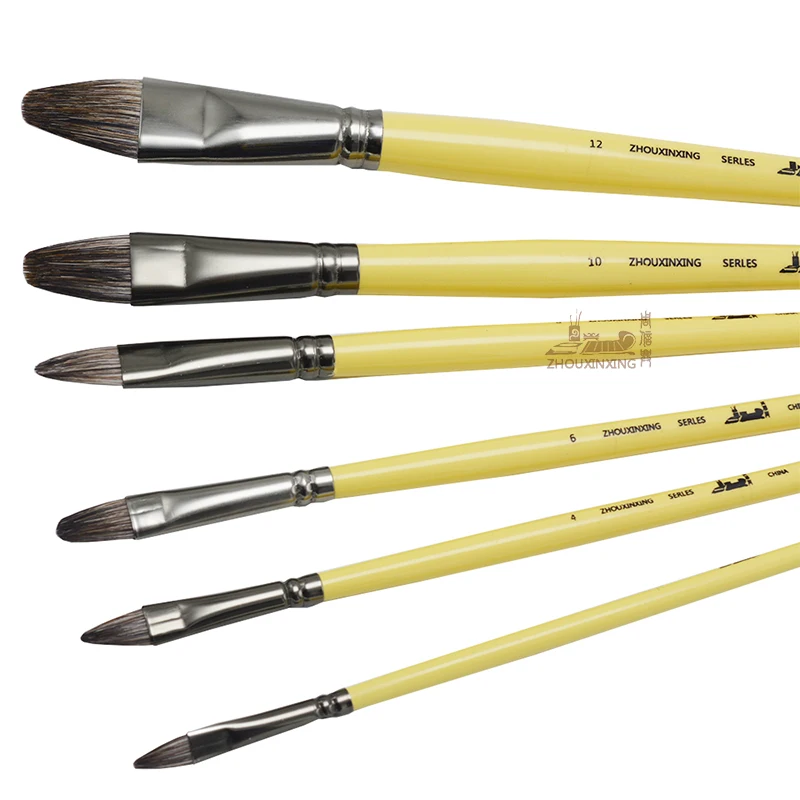 6pcs/Set, Weasel Hair Row of Pens Hazelnut Shape Paint Brush Acrylic Oil Painting Watercolor Professional Gouache Art Supplies