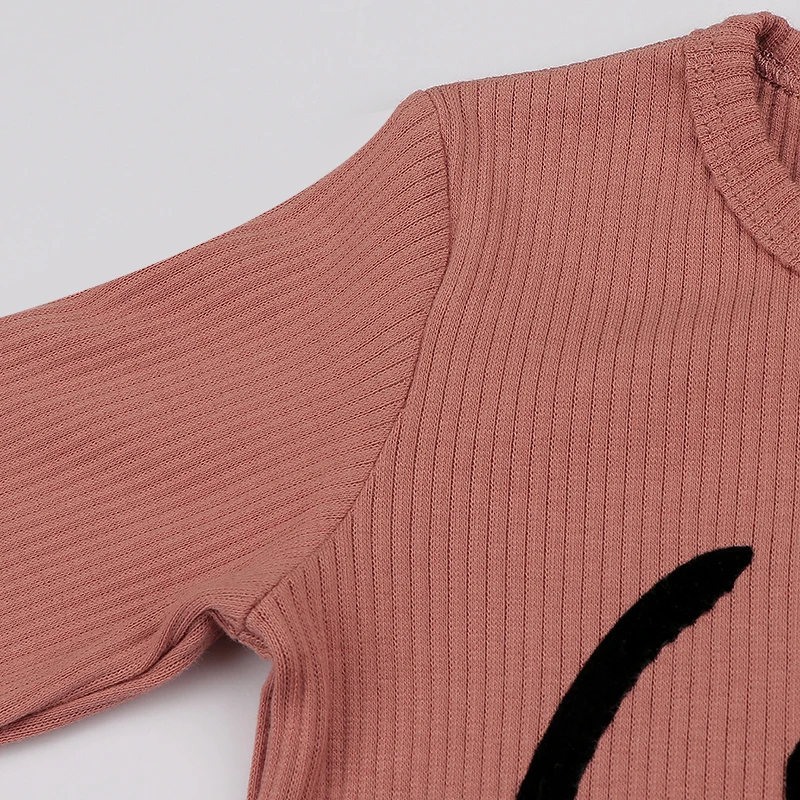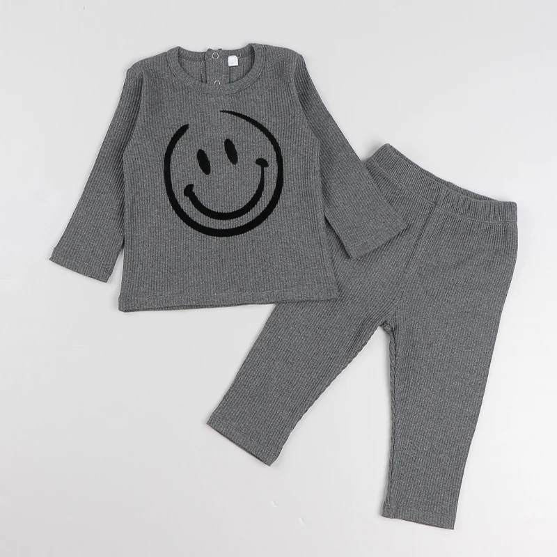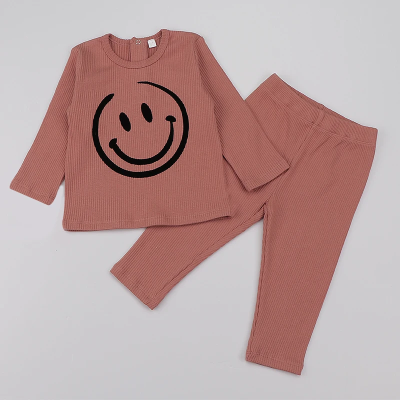 Child pajamas 2 pieces set top and pants ribbed kids clothes boy girl clothing round neck winter pajama baby set flocking smile