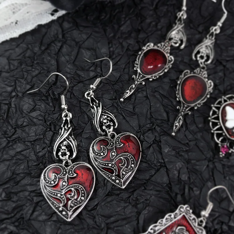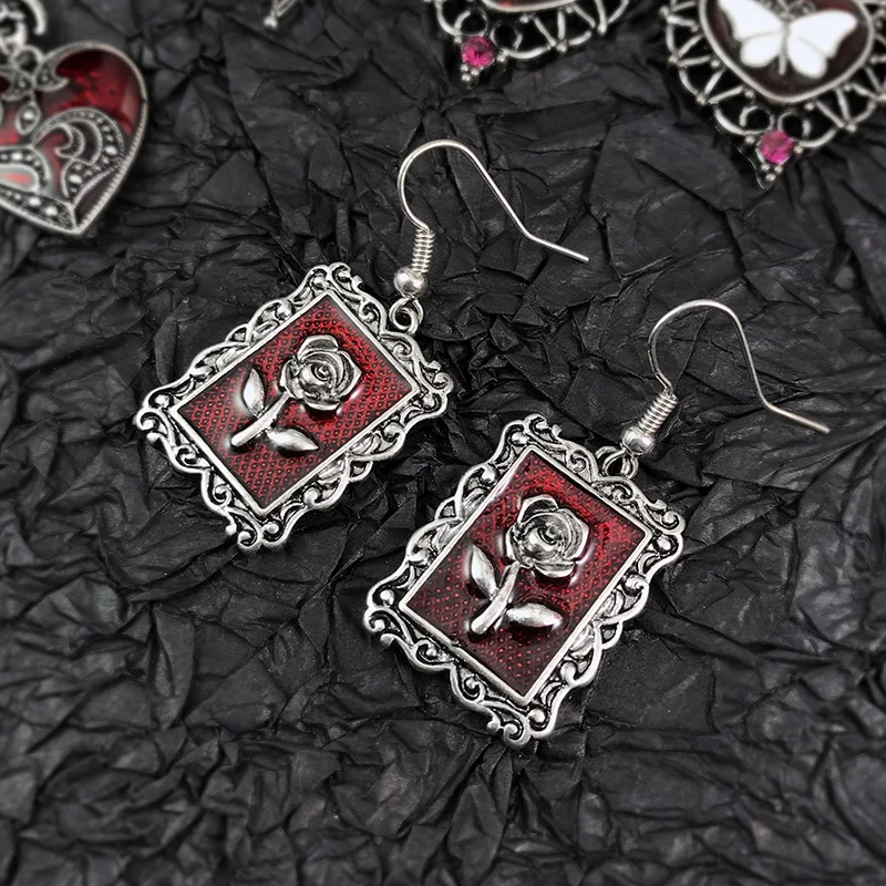 Dark Gothic Lolita Vintage Drop Earrings For Women Bat Butterfly Rose Heart Earring Punk Goth Halloween Masquerade Jewelry