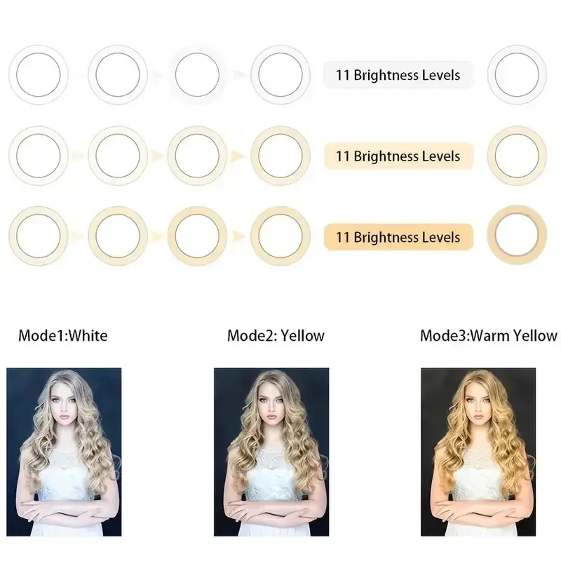 • Luz Selfie con trípode:Esta luz selfie viene con un trípode, asegurando una iluminación estable y profesional para sus autorretratos. Es ideal para personas influyentes en las redes sociales, vloggers y vendedores de contenido.