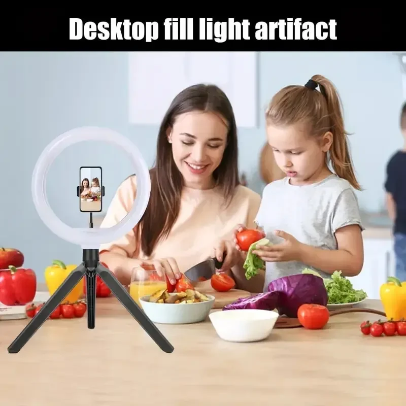Desk Ring Fill Light 26cm Dimmable LED Ring Light with Tripod Stand Angle Adjustable USB Interface for Video Live Stream Makeup