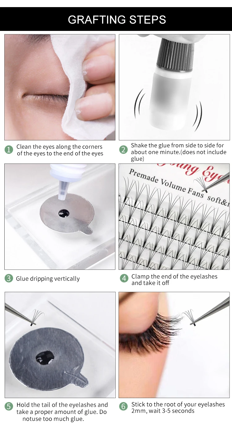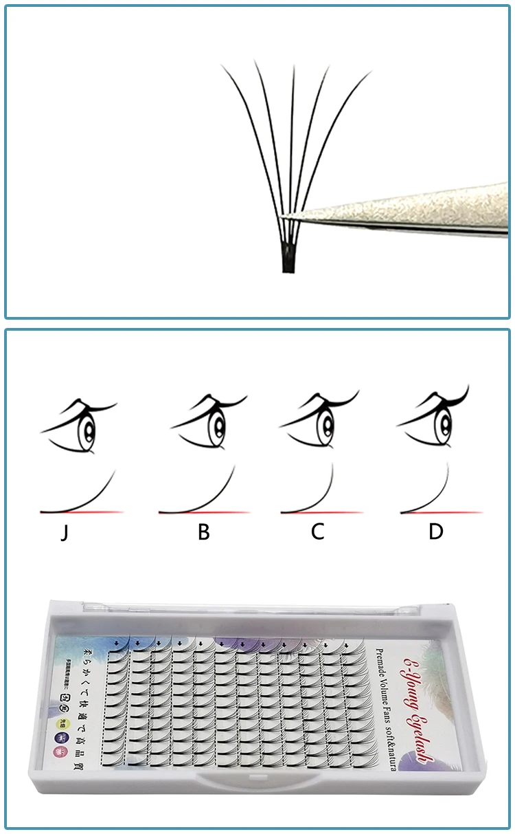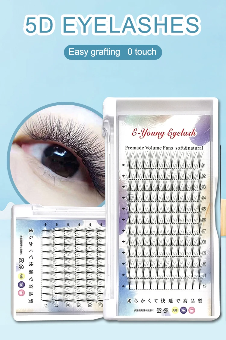 E-YOUNG Russian Premade Volume Fans 3d/4d/5d Natural lashes Short Stem Individual Eyelashes Extension Supplies Make Up Tool