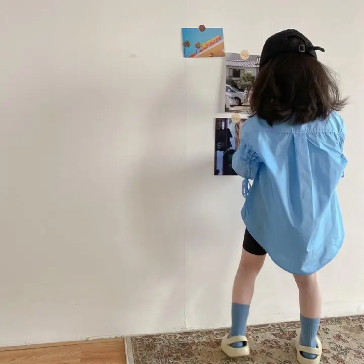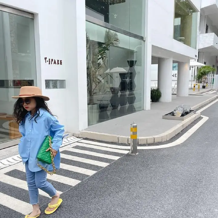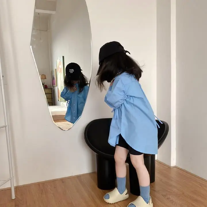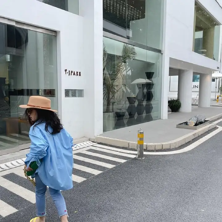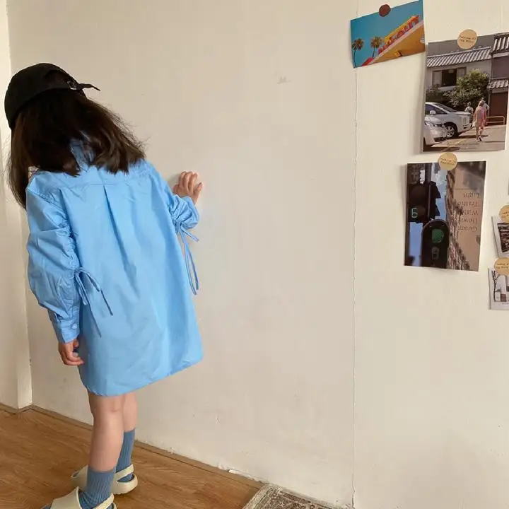 Fashion Baby Girl Blue Shirt Toddler Teen Child Blouses Loose Outfit Long Sleeve Spring Autumn Baby Oversized Clothes 2-11Yrs