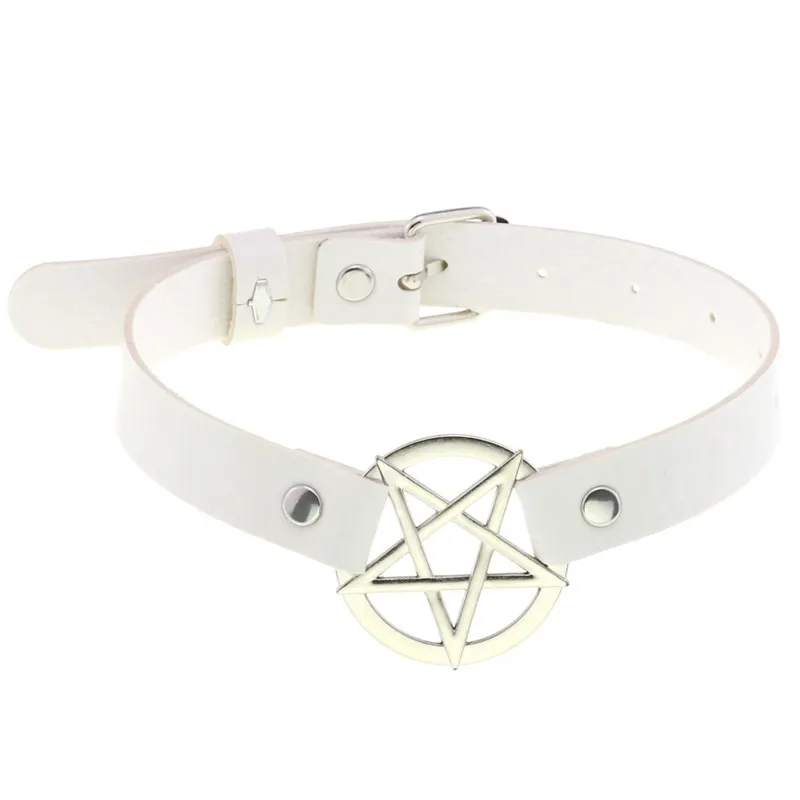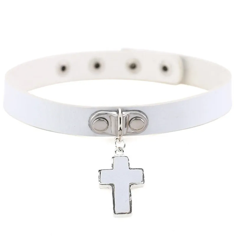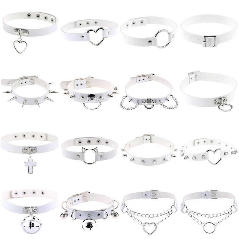 Goth White Heart Necklace Spike Choker Collar Punk Pu Leather Gothic Accessories Sexy Vegan Chocker Woman Witch Cosplay Jewelry