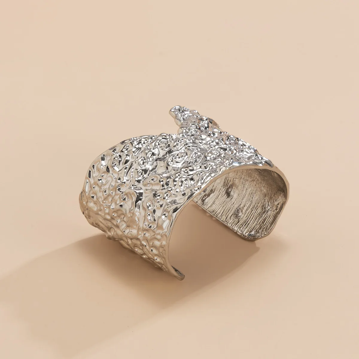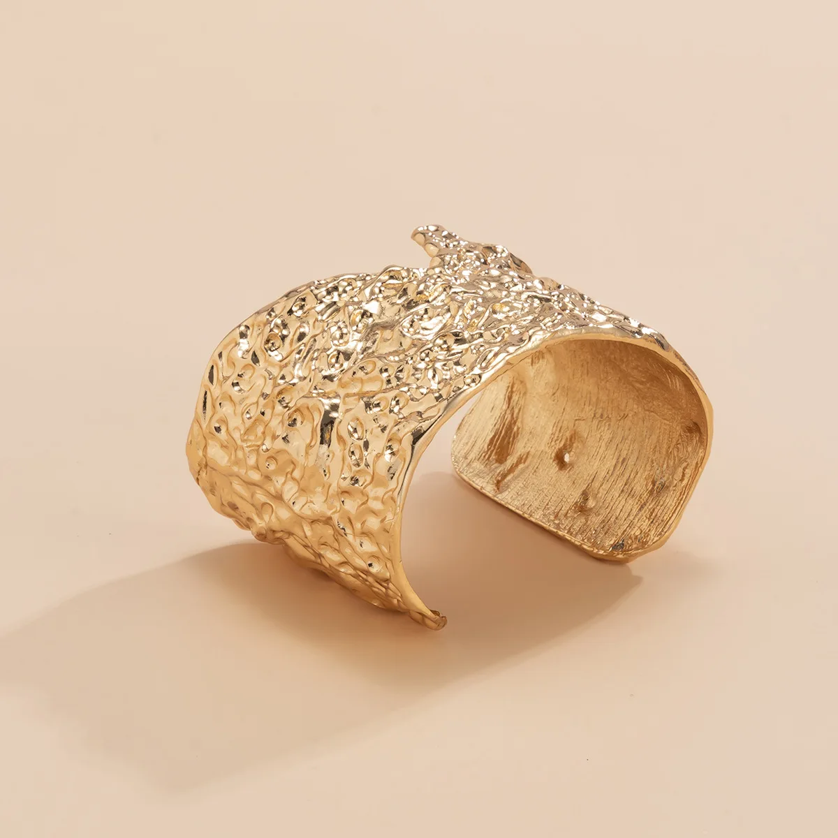 Gothic Punk Metal V-notch Pitted Bracelets For Women Men Rock Irregular Opening Bracelet Bangles Hip Hop Jewelry Emo Party Gifts
