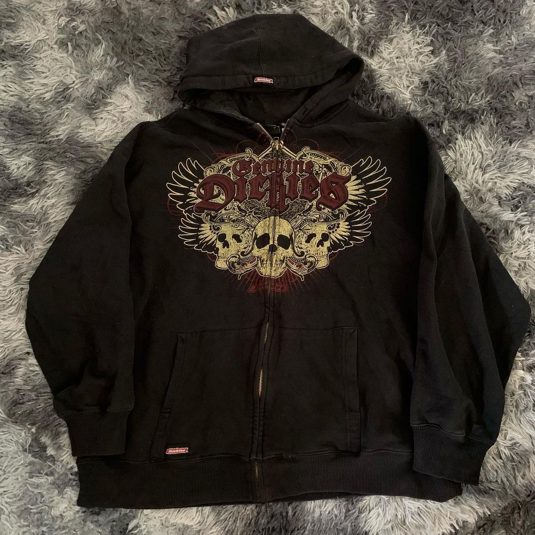 Harajuku Vintage Skull Print Letter Black Hoodie Y2k Casual Loose Fit Women's Hip Hop Sports Long Sleeve Hooded Sweatshirt