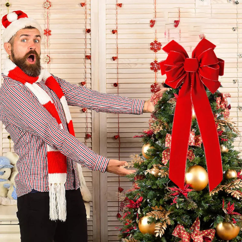 Red Christmas Bows Outdoor Decorations,Large Christmas Tree Topper Bow with Glitter Gold Edge for Xmas Home Front Door Decor