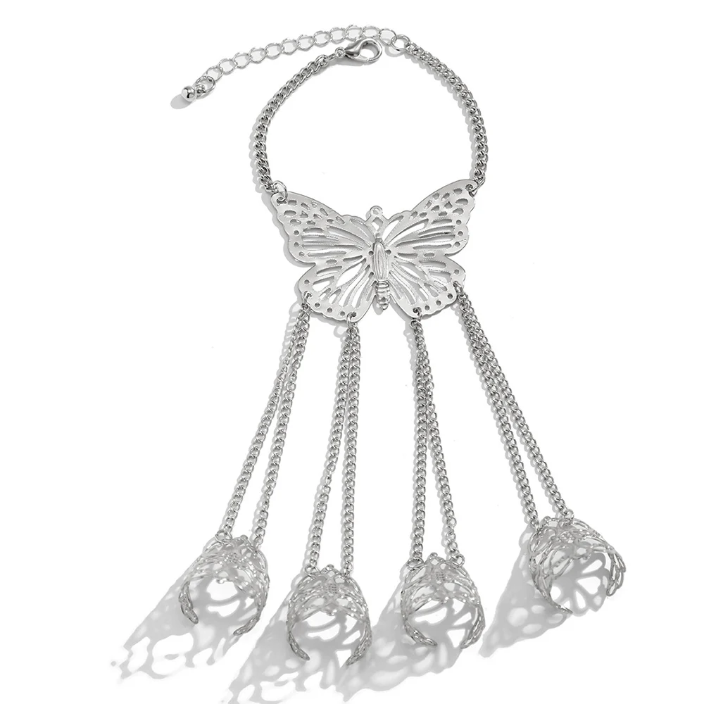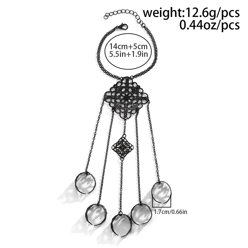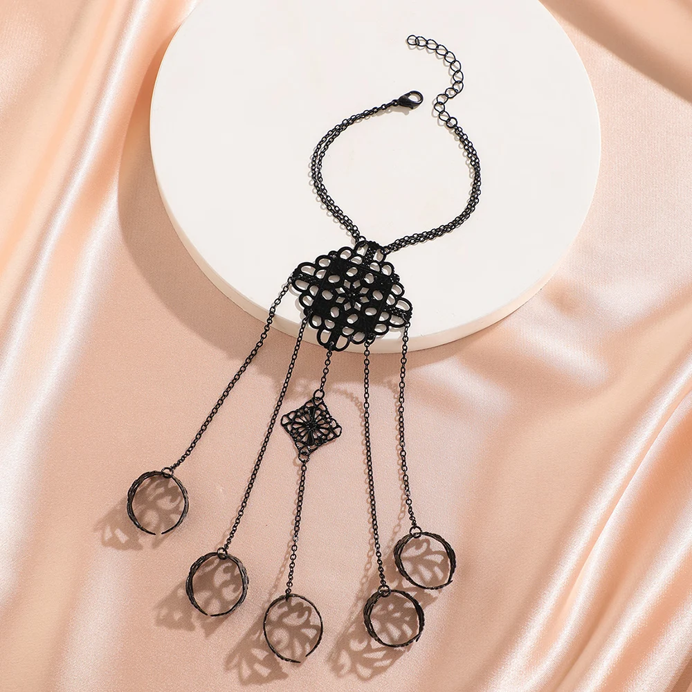 Vintage Gothic Black Chain Rings Link Bracelets For Women Punk Hiphop Hollow Butterfly Square Lace Bracelet Female Party Jewelry