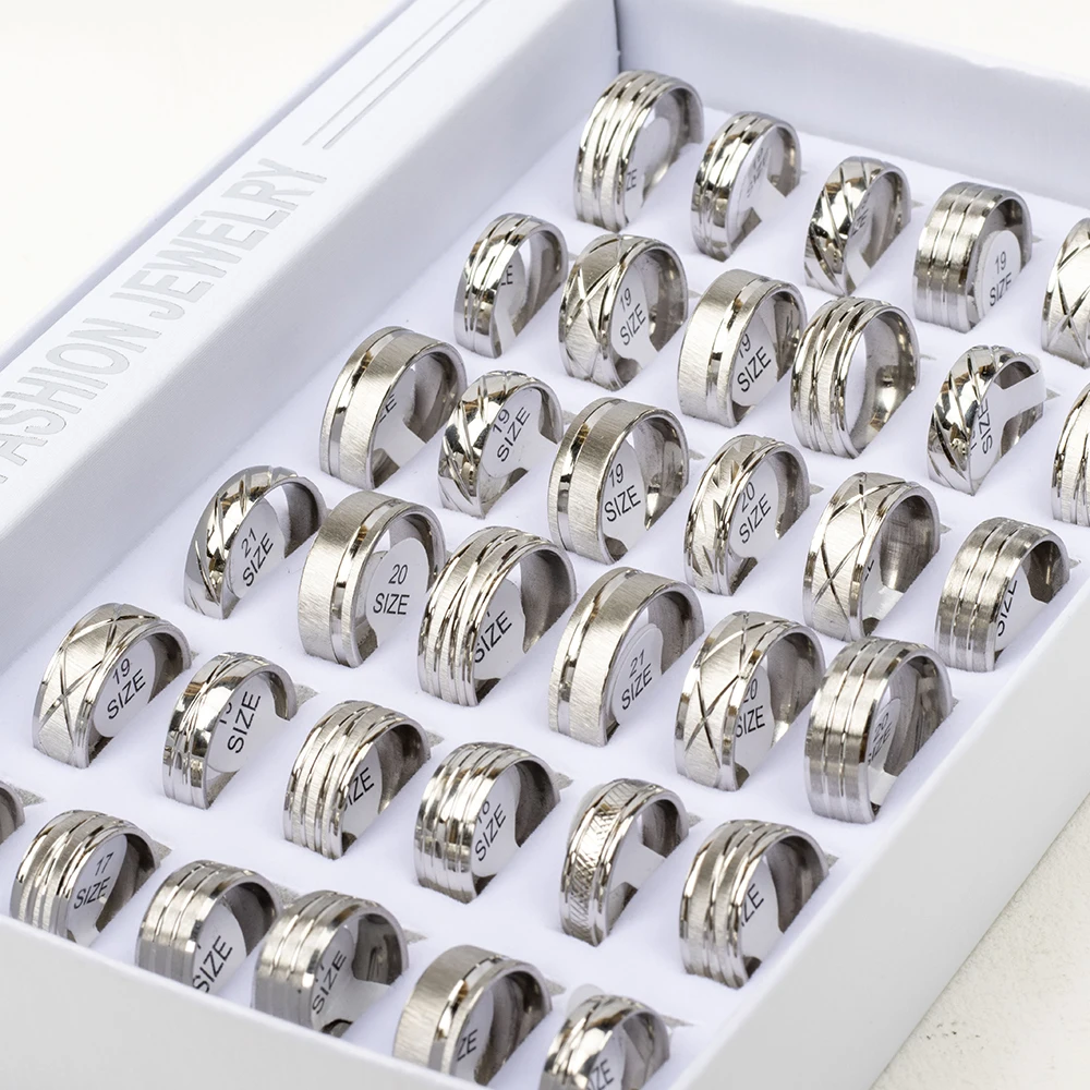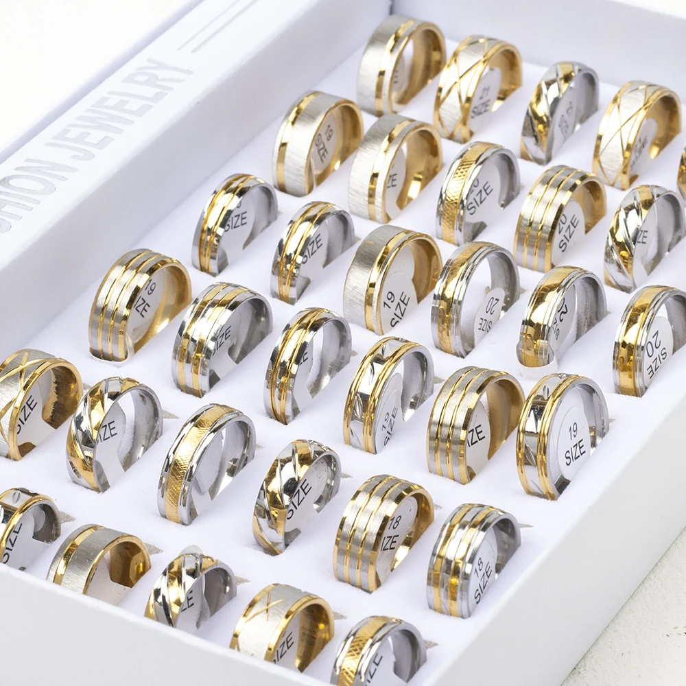 Wholesale 24pcs/lot Fashion High Quality Stripe Stainless Steel Gold Silver Plated Rings Jewelry For Women Men Mix Style Party