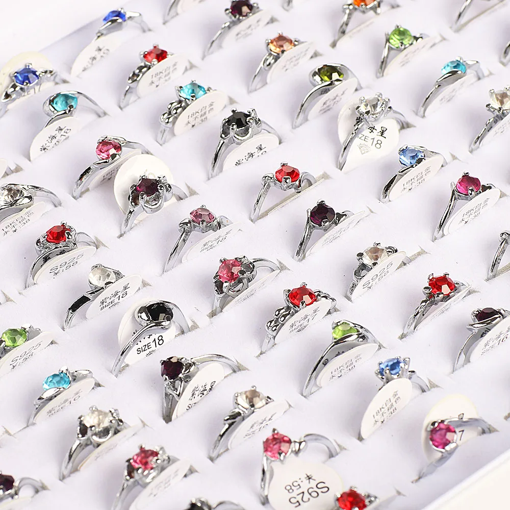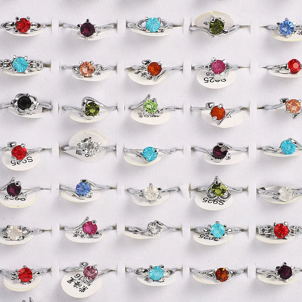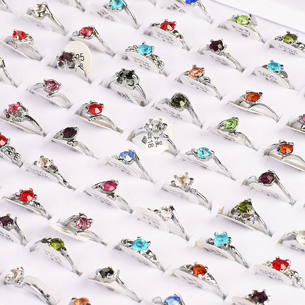 Wholesale Lots Job 20Pcs Color Crystal Rhinestones Women Rings Engagement Wedding Party Gift Fashion Jewelry HOT