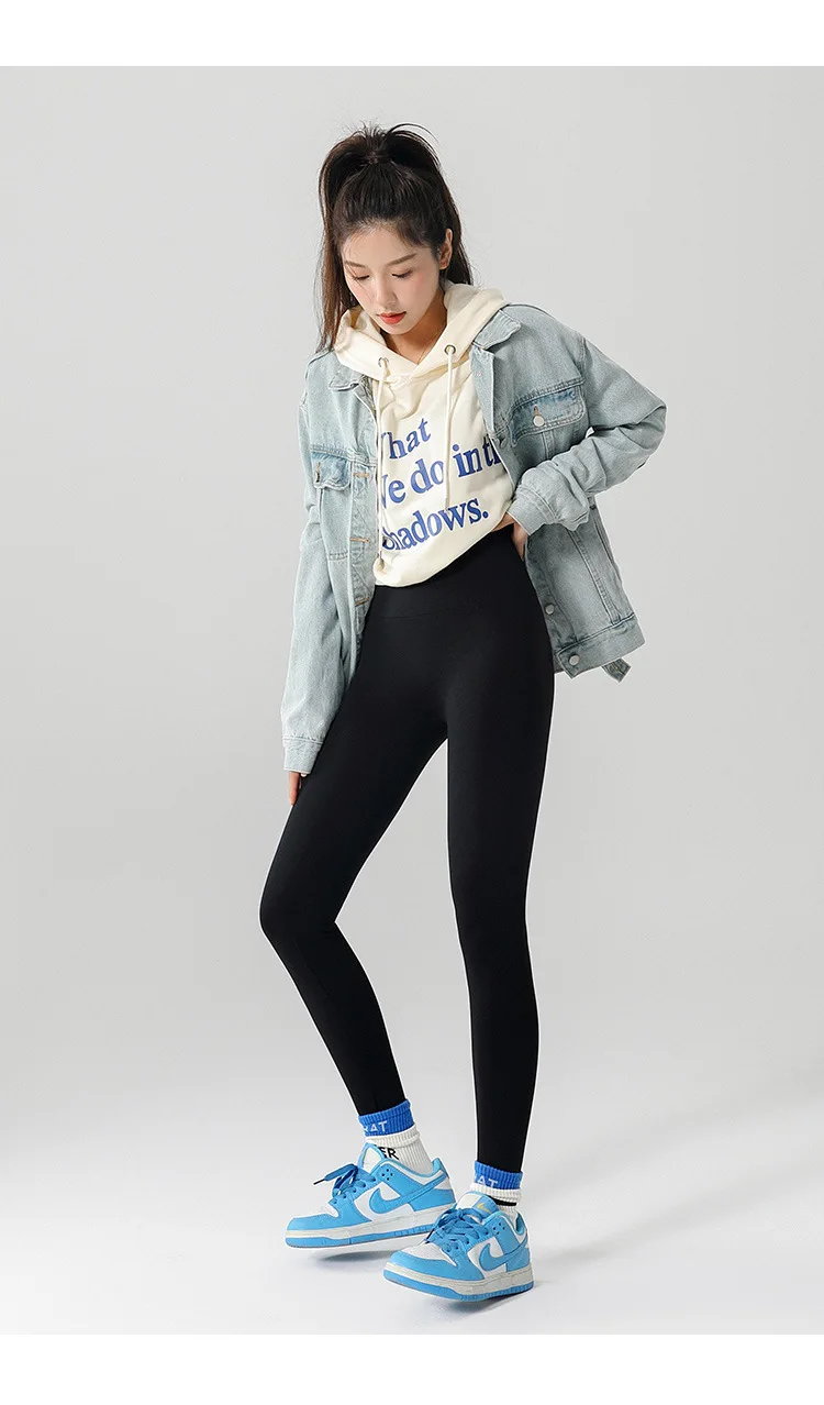Women's Autumn Winter Thickened Alpaca Velvet Black Shark Leggings High Waist Slim Seamless Fleece Warm Leggings